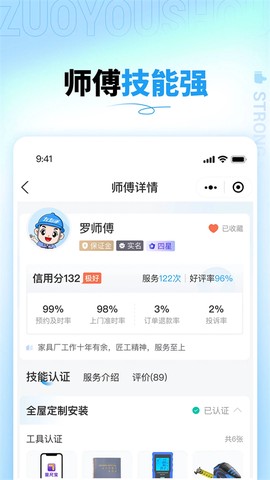 4、师傅准入机制严格,实行多项任务认证制度,通过多轮筛选确保师傅具备专业资质,真正做到优中选优,保障服务质量。